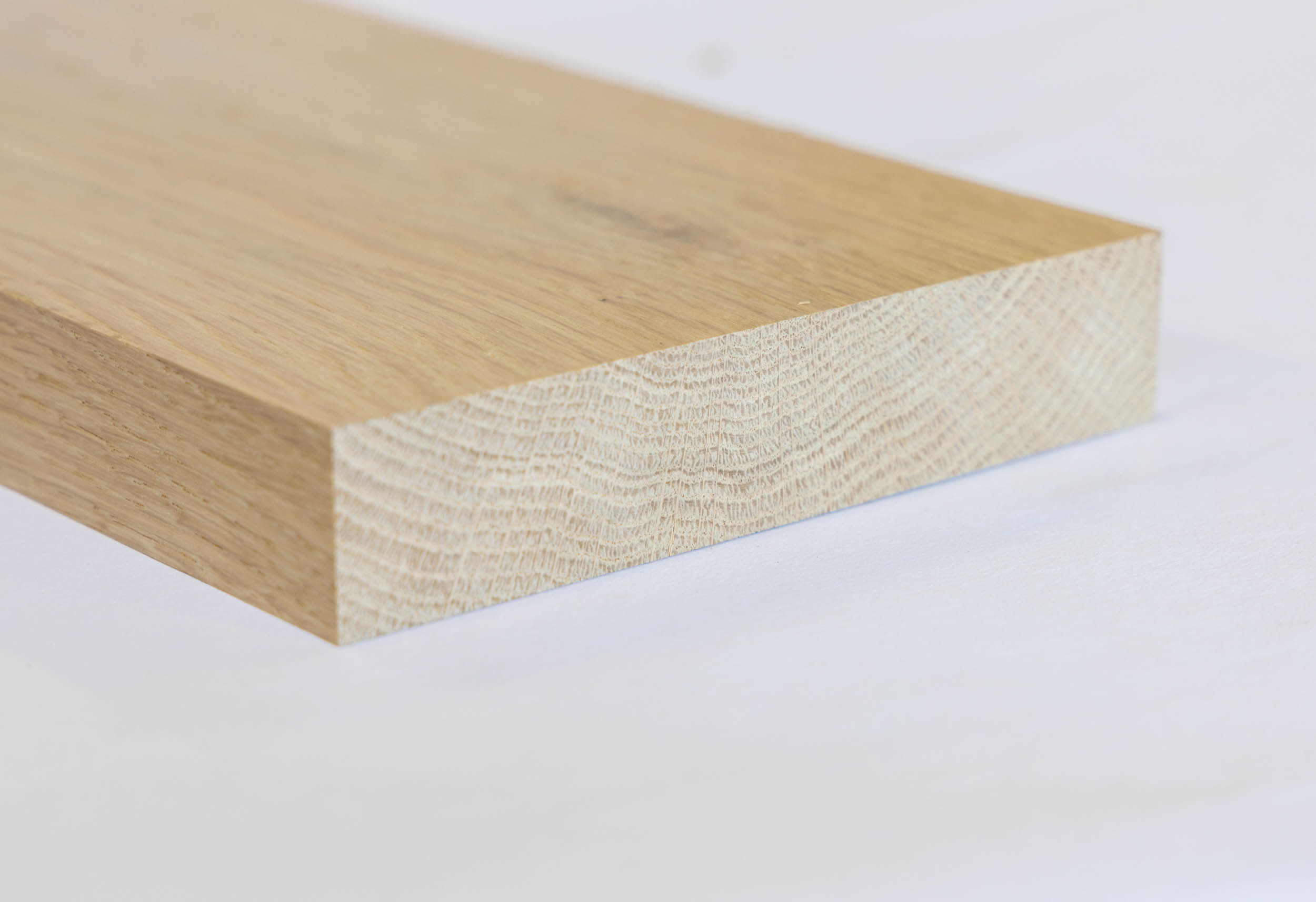 Okantade ekbrädor. De är ohyvlade och möbeltorra. Perfekt till hyllplan eller möbler.