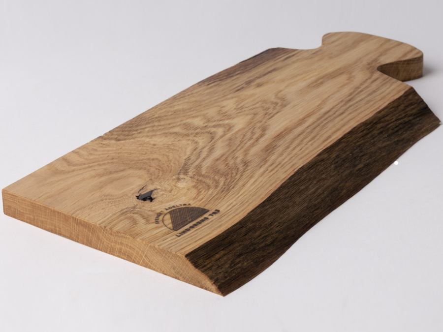 En vacker och hållbar serveringsbräda tillverkad av lokalvuxen svensk ek. Brädan är gjord av ett enda stycke trä, vilket ger den extra styrka och lång livslängd.